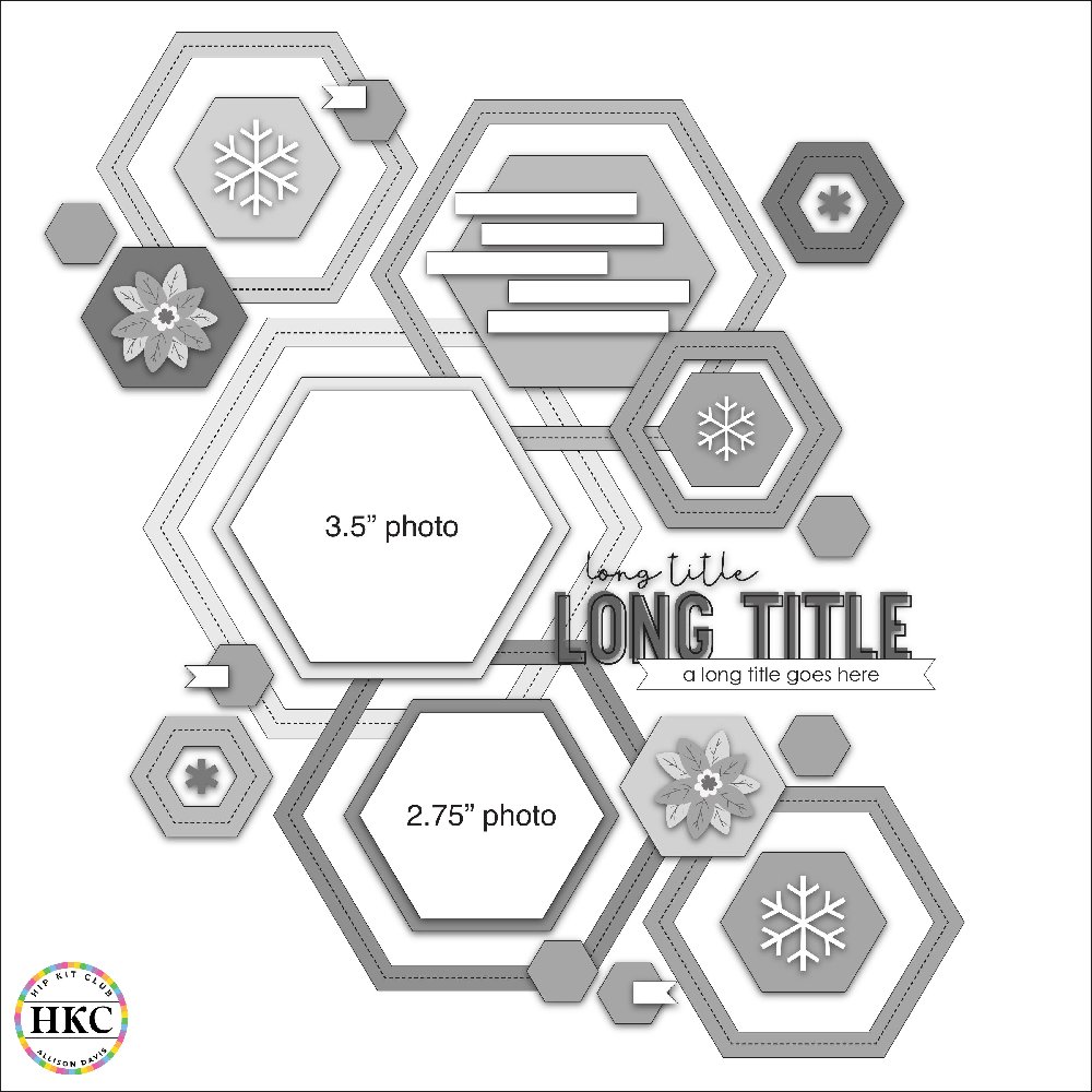 Scrapbook layout sketches: 10 free sketches for beginners Are you looking for the perfect way to document those cozy Christmas memories? Or maybe you’re staring at a pile of holiday paper scraps wondering how to use them up? This stunning Sketch 1 by Allison Davis for the Hip Kit Club is the answer! It’s whimsical, balanced, and creates the perfect centerpiece for your holiday album. Here’s why we are obsessed with this design: Forget complicated background cut files—the star of this layout is a massive Christmas tree built entirely from horizontal paper strips! Why it works: It is the ultimate way to mix and match patterns. Whether you have 6x6 pads or skinny scraps left over from other pages, you can stack them from wide to narrow to build your tree. Add some texture: The sketch shows dashed lines on every strip—this is your sign to break out the sewing machine and add some messy stitching for that cozy, homemade quilt feel! This layout is designed for those adorable detail shots. It features a trio of smaller photos that don’t overwhelm the design: Left Cluster: A vertical 2.5 \times 3.5-inch photo paired with a 2.5 \times 2.5-inch square. Right Cluster: A solo 2.5 \times 2.5-inch square, tilted just slightly for a playful look. Perfect for: Opening presents, detail shots of your ornaments, or candid smiles. This is the fun part! The sketch mimics a real tree by draping "garlands" across the paper strips. String it up: Use twine or Baker’s Twine to create swags across the tree. Hang your ornaments: Go wild with circular flair buttons, wood veneers, and die-cuts! The sketch shows gingerbread men, stockings, candy canes, and snowflakes. It’s a great excuse to dig into your embellishment stash and use up those little bits and pieces. Go Big: There is a spot for a nice, long script title at the bottom left. It anchors the tree and overlaps the photos beautifully. Tell the Story: Tucked above the left photo cluster are simple journaling strips. It balances the layout and gives you just enough room to jot down the who, what, and where. Ready to add a modern, geometric twist to your holiday scrapbooking? Put down the squares and rectangles, because it is time to embrace the HEXAGON! This eye-catching Sketch 2 by Allison Davis for the Hip Kit Club is all about shapes, layers, and creating a beautiful "honeycomb" of memories. It looks intricate, but with this roadmap, it’s a breeze to put together. Here is the lowdown on this stunning design: The backbone of this layout is a flowing river of hexagons moving from the top left to the bottom right. Mix it Up: The sketch uses a variety of hexagon sizes—some large, some tiny accents, and everything in between. Frames & Solids: Notice the mix of solid paper pieces and open "frames." This is perfect for layering patterned papers without it looking too heavy. Stitch it Up: In true Allison Davis fashion, there are dashed lines around the hexagons. Whether you hand-stitch, machine-stitch, or use a faux-stitch stamp, that texture makes the shapes pop! This layout dares you to crop your photos into shapes! It features two photos cut into hexagons to fit seamlessly into the design grid. Main Photo: A larger 3.5-inch hexagon positioned centrally. Secondary Photo: A smaller 2.75-inch hexagon nestled below the first one. Scrapper’s Tip: If you don't have a hexagon die-cutter, just make a simple cardstock template, trace it over your photo, and cut by hand! One of the coolest features of this sketch is how the embellishments are contained inside the hexagons. It feels organized but festive! Winter Icons: The sketch shows snowflakes and poinsettias centered inside the hexagon frames. This acts almost like a gallery wall or shadow box effect. Tiny Details: Don't forget the tiny solid hexagons scattered around the edges like confetti, and the little flags/banners tucked under the larger shapes for extra dimension. The Title: There is a dynamic "triple-threat" title spot on the right. It combines a script word ("long"), a bold block alpha ("TITLE"), and a subtitle strip underneath. This mix of fonts adds so much energy! The Journaling: No floating text here! The journaling lines are neatly contained inside one of the medium-sized hexagons near the top. It keeps the geometric vibe perfectly intact. 💡 Why we love this sketch: It is a fantastic "scrap buster!" Those medium and small hexagons are the perfect way to use up the last little bits of your favorite holiday paper collection. Are you brave enough to crop your photos into hexagons? Grab your patterned paper and let’s get geometric! 🔷✨ Ready to turn your page into a work of modern art? This stunning geometric Sketch 3 by Allison Davis for the Hip Kit Club uses a repeating pattern of triangles to create an unforgettable background that practically designs itself! If you love graphic, clean lines and big impact, this sketch is your new best friend. Here’s why this mountain of triangles is pure scrapbooking gold: The entire layout is covered in a fantastic, repeating grid of triangles. It instantly creates movement and depth on your page. Pieced Pattern: The larger triangles are created from smaller triangles, making this the perfect place to mix three or four different patterned papers from your collection. Texture Alert: Every major line features that signature dashed stitching—this is essential for defining the shapes and giving the flat paper background a cozy, quilted texture. Small Details: Scattered throughout the background are tiny, subtle embellishments like small hearts and plus signs, filling the negative space within the triangles. Unlike busy multi-photo layouts, this design keeps the focus tight with a single, perfectly matted photo cluster. Size: A vertical $2.5 \times 3.5$ inch photo sits on the left side of the page, framed by stacked layers of paper or cardstock to give it weight. Layering: The photo is layered onto a larger, slightly crooked frame and then st