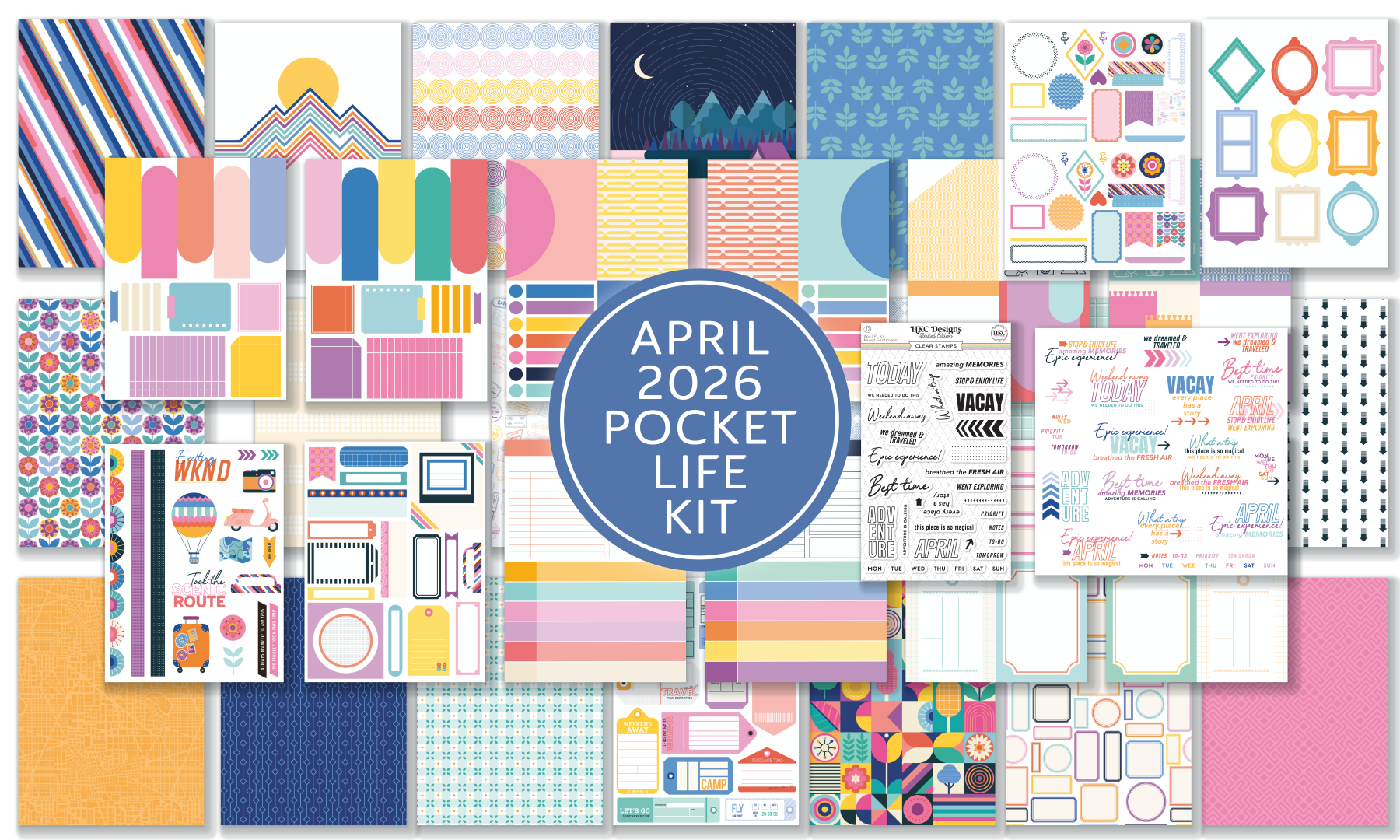 Our April 2026 Hip Kit Club Pocket Life Scrapbook Kit contains the following: