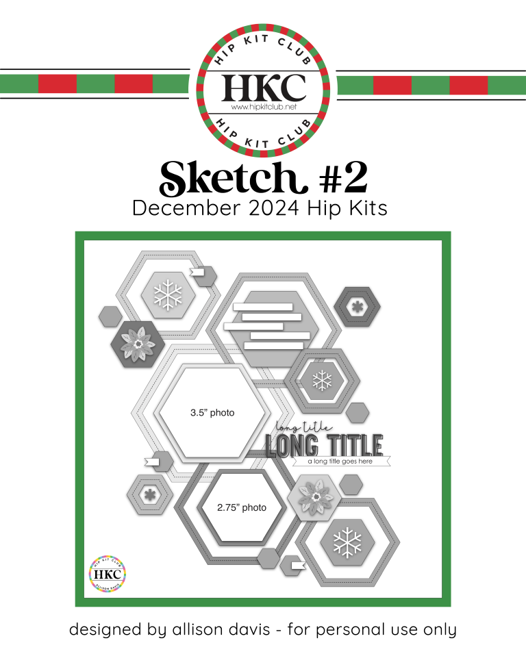 This eye-catching Sketch 2 by Allison Davis for the Hip Kit Club is all about shapes, layers, and creating a beautiful “honeycomb” of memories. It looks intricate, but with this roadmap, it’s a breeze to put together. Here is the lowdown on this stunning design: