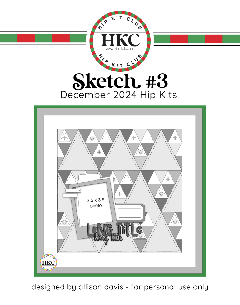 Ready to turn your page into a work of modern art? This stunning geometric Sketch 3 by Allison Davis for the Hip Kit Club uses a repeating pattern of triangles to create an unforgettable background that practically designs itself!