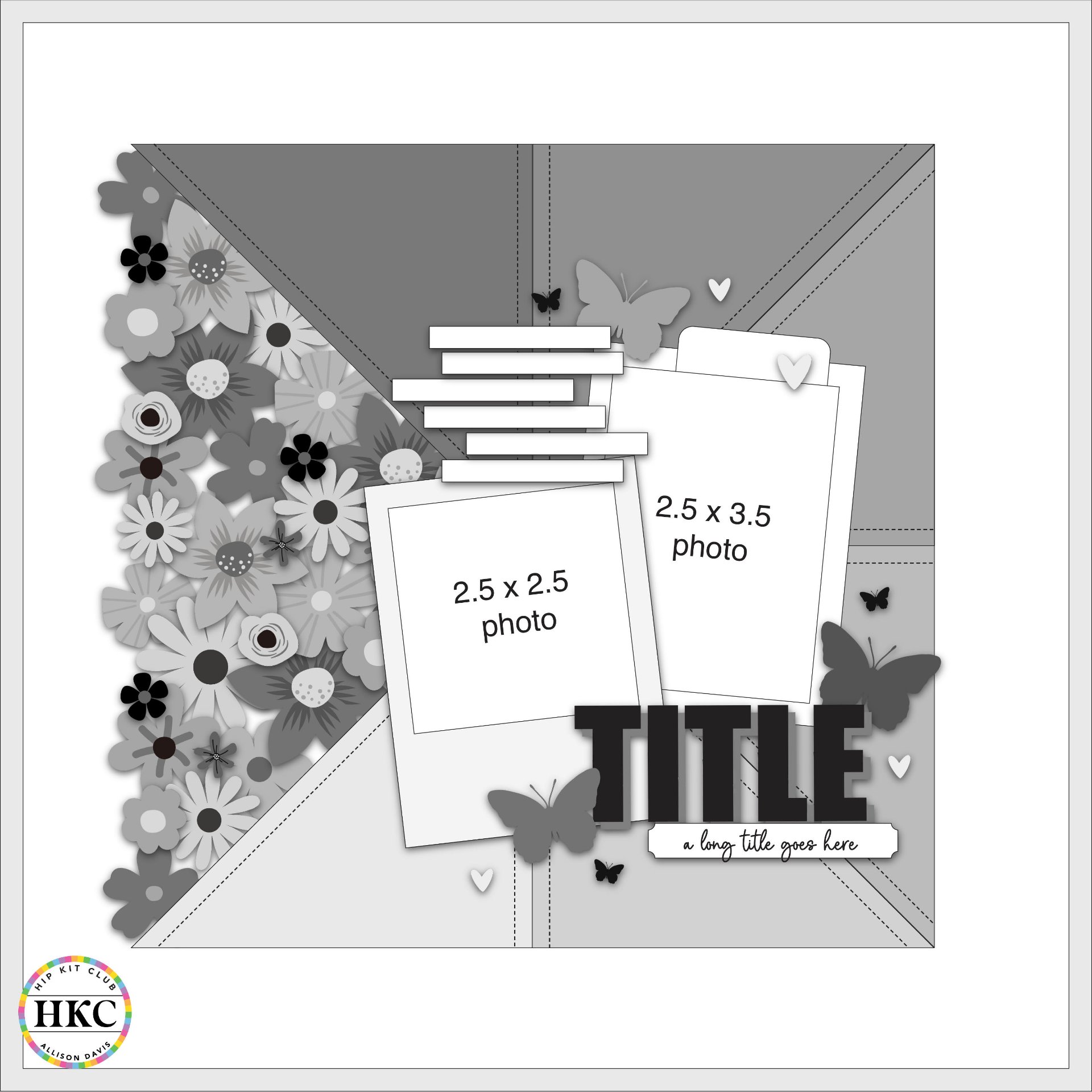 Ready for a layout that truly blooms? This gorgeous Sketch 4 by Allison Davis for the Hip Kit Club combines a dramatic floral cascade with a clean, graphic background for a stunning contrast. It’s perfect for capturing garden memories, portraits, or any photo that needs a major dose of femininity and flair!