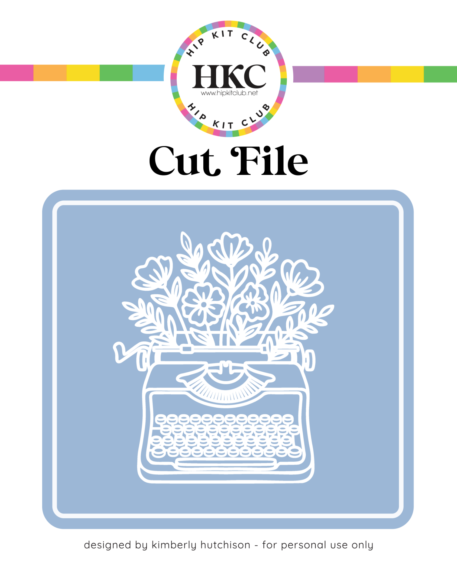 March 2026 Typewriter with Flowers Cut File — a digital cut file from Hip Kit Club. Themes: Spring, Floral, Vintage, Retro.